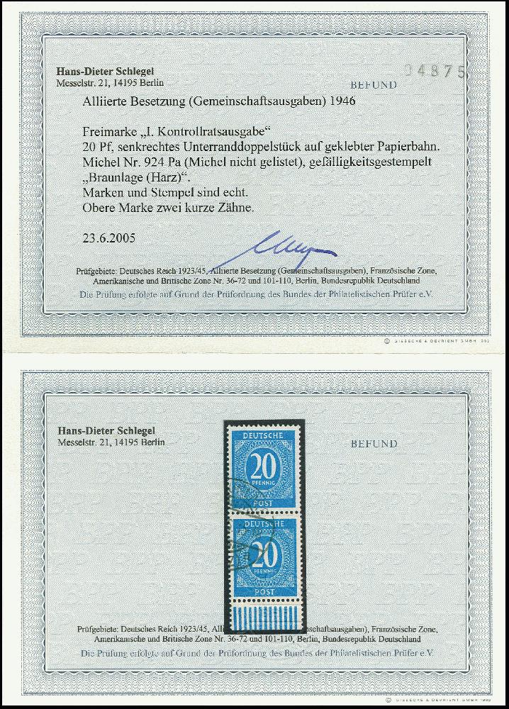 | Prüfer: | Schlegel, Hans-Dieter (BPP (Bund Philatelistischer Prüfer)) |