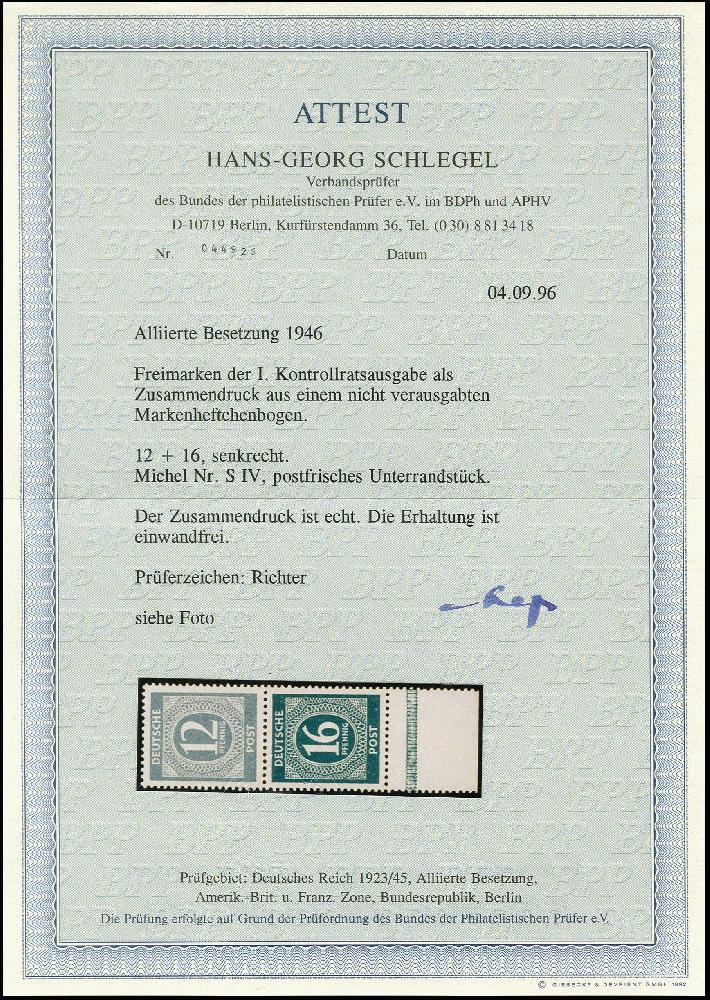 | Prüfer: | Schlegel, Hans-Georg (BPP (Bund Philatelistischer Prüfer)) |