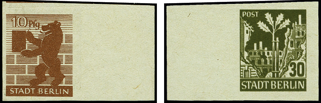 | Zusatzinformationen und Suchstichworte: | 367. Auktion Heinrich Köhler 25. - 29. September 2018 Los 1657 Probedruck 10 Pfg. ungezähnt auf hellgrünem Papier ohne Gummierung mit rückseitigem Druck der 30 Pfg., Randstück, oben außerhalb der Markenbilder mit waagerechtem Bug, sonst tadellos, sehr selten, Fotoattest Ströh BPP (1994) (Mi. 1.700,-) Ausruf 400,00 EUR |