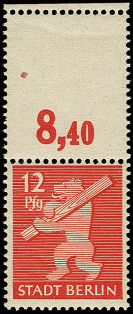 | Zusatzinformationen und Suchstichworte: | 367. Auktion Heinrich Köhler 25. - 29. September 2018 Los 1661 12 Pfg., Oberrandstück mit kpl. Leerfeld, postfrisch mit leichten Gummischlieren am Oberrand, tadellos, Fotoattest Dr. Jasch BPP (2009) (Mi. 320,-) Zuschlag 70,00 EUR |