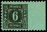 | Zusatzinformationen und Suchstichworte: | 367. Auktion Heinrich Köhler 25. - 29. September 2018 Los 1669 6 Pfg. schwarz auf opalgrün mit Abart "rechts ungezähnt", Randstück, postfrisch, tadellos, sign. Ing. Becker und Fotoattest Kramp BPP (2002) (Mi. 800,-) Ausruf 200,00 EUR |