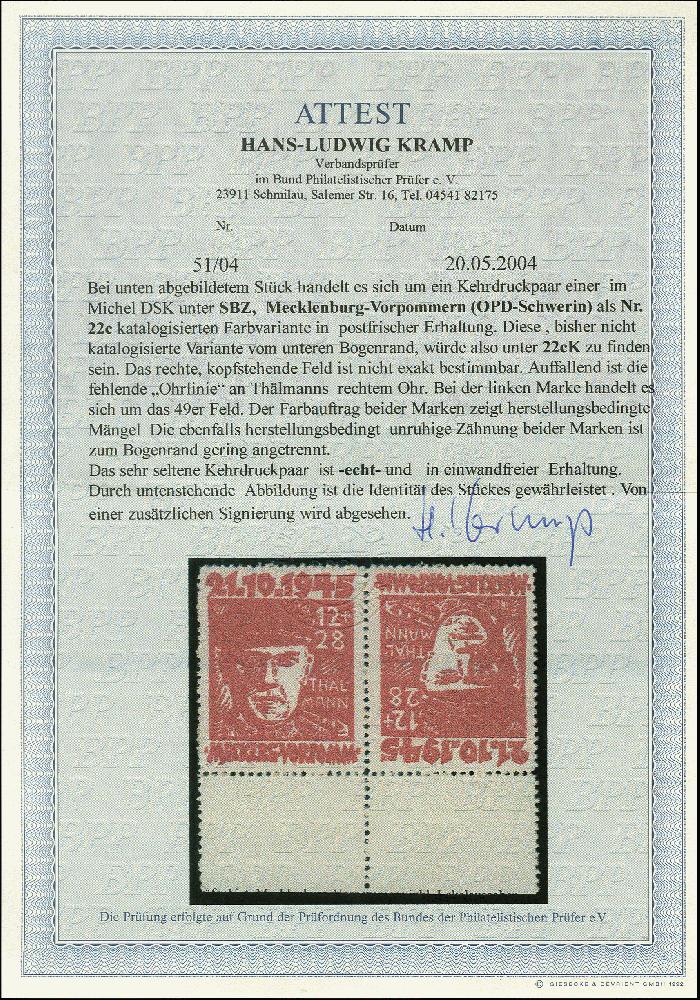 | Prüfer: | Kramp, Hans-Ludwig (BPP (Bund Philatelistischer Prüfer)) |