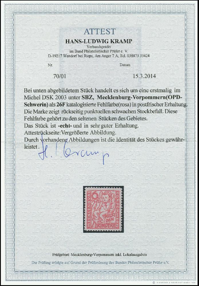 | Prüfgebiet: | Alliierte Besetzung SBZ Mecklenburg-Vorpommern |