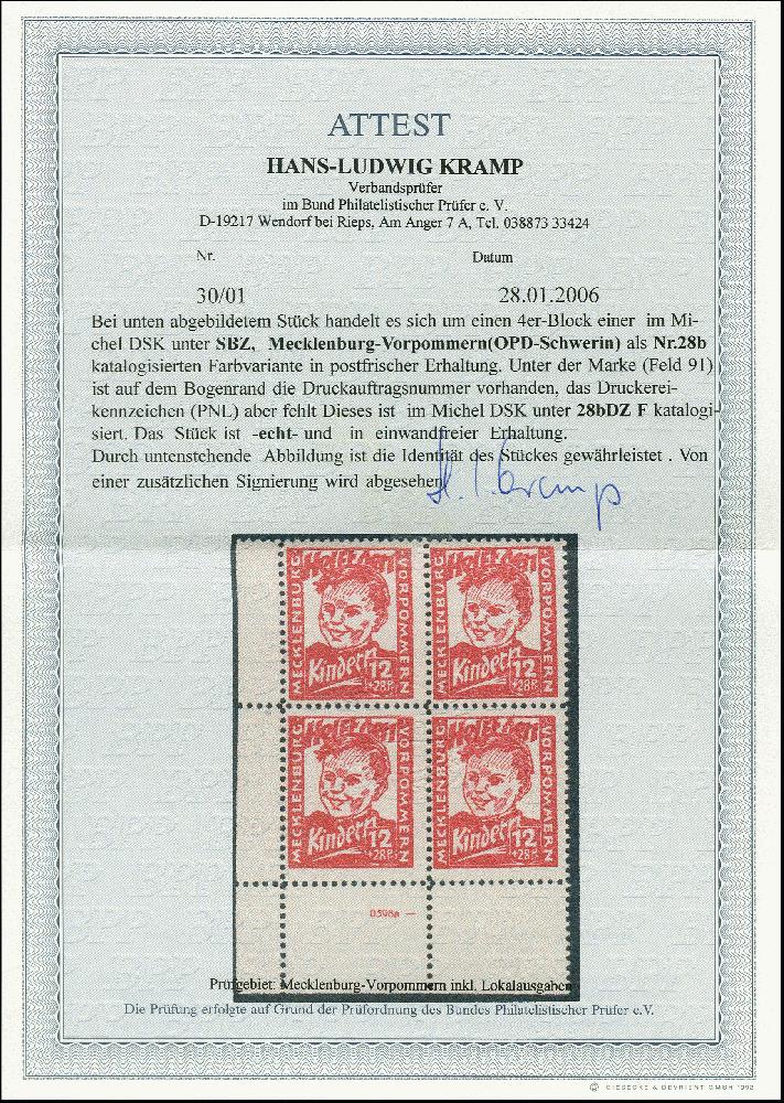 | Prüfer: | Kramp, Hans-Ludwig (BPP (Bund Philatelistischer Prüfer)) |