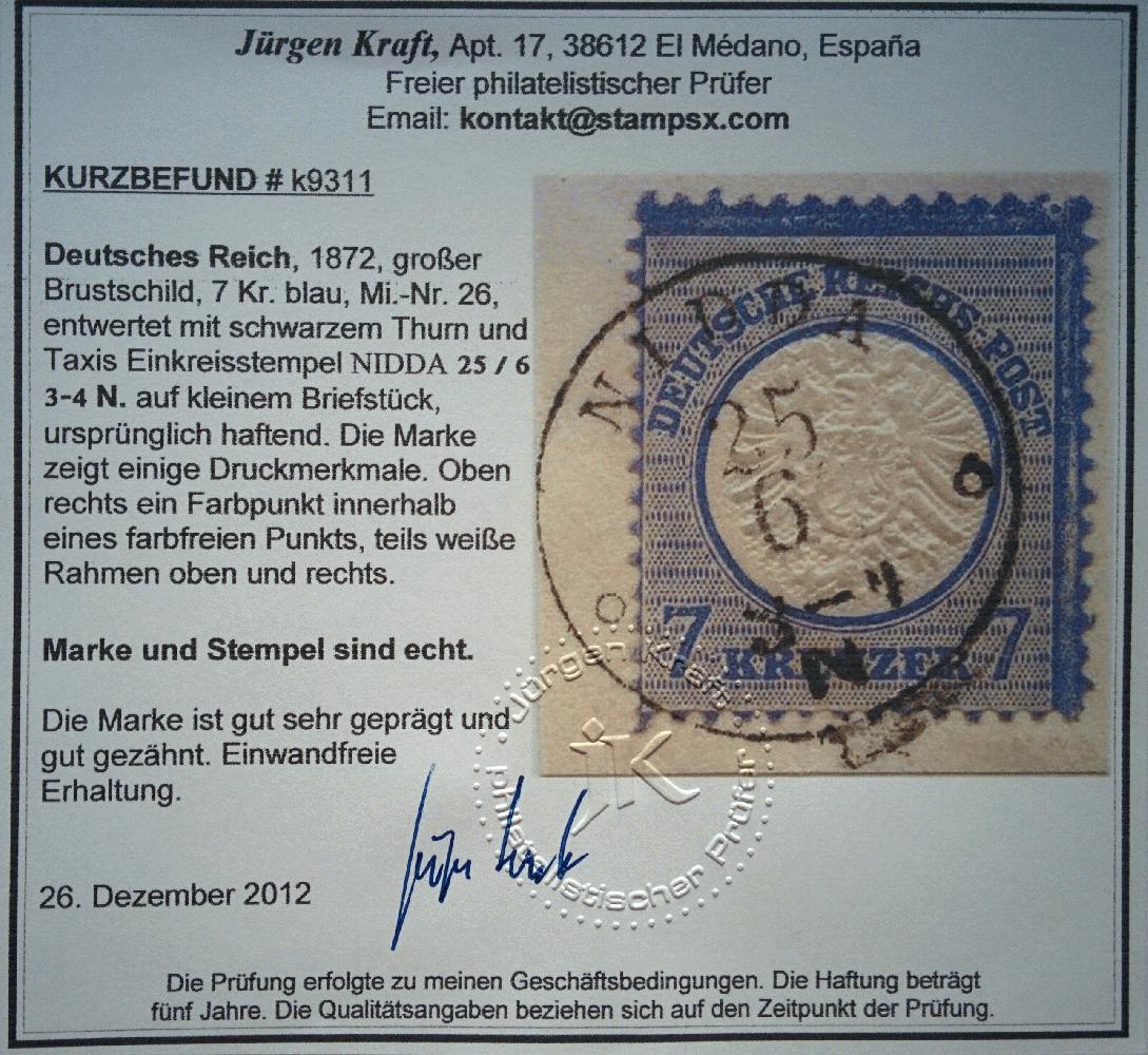 | Prüfgebiet: | Deutsches Reich 1871 - 1918 (Mi-Nr. 1 - 106) |