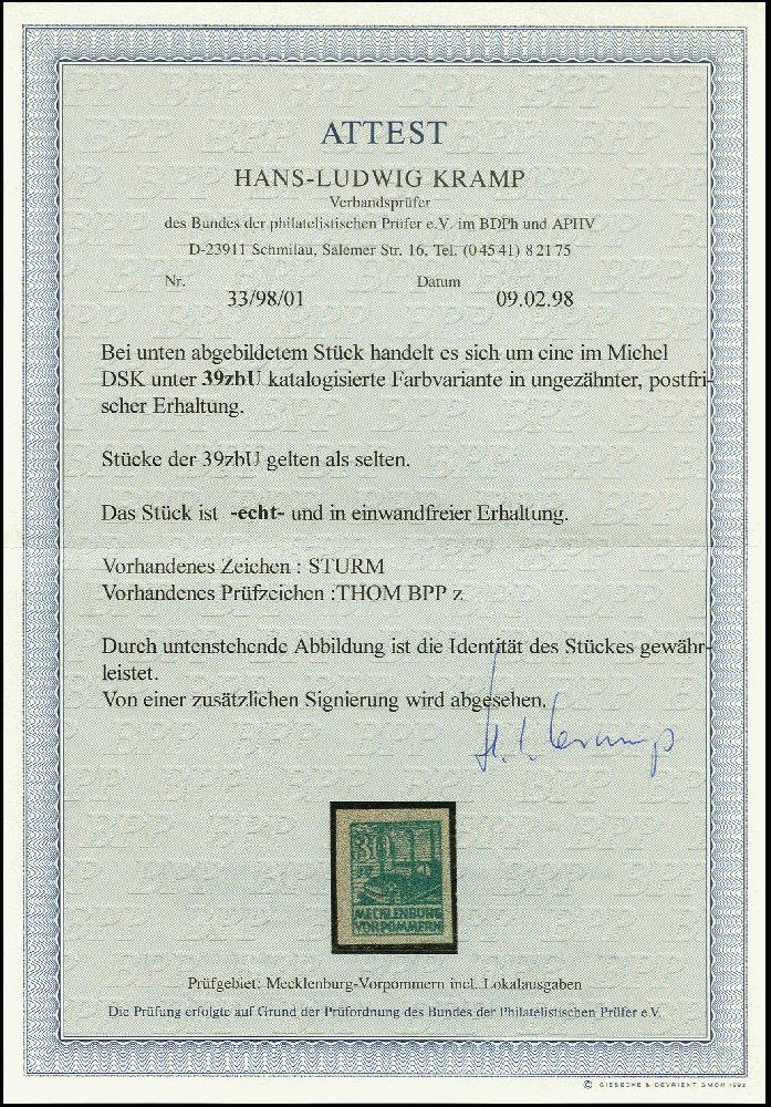 | Prüfer: | Kramp, Hans-Ludwig (BPP (Bund Philatelistischer Prüfer)) |