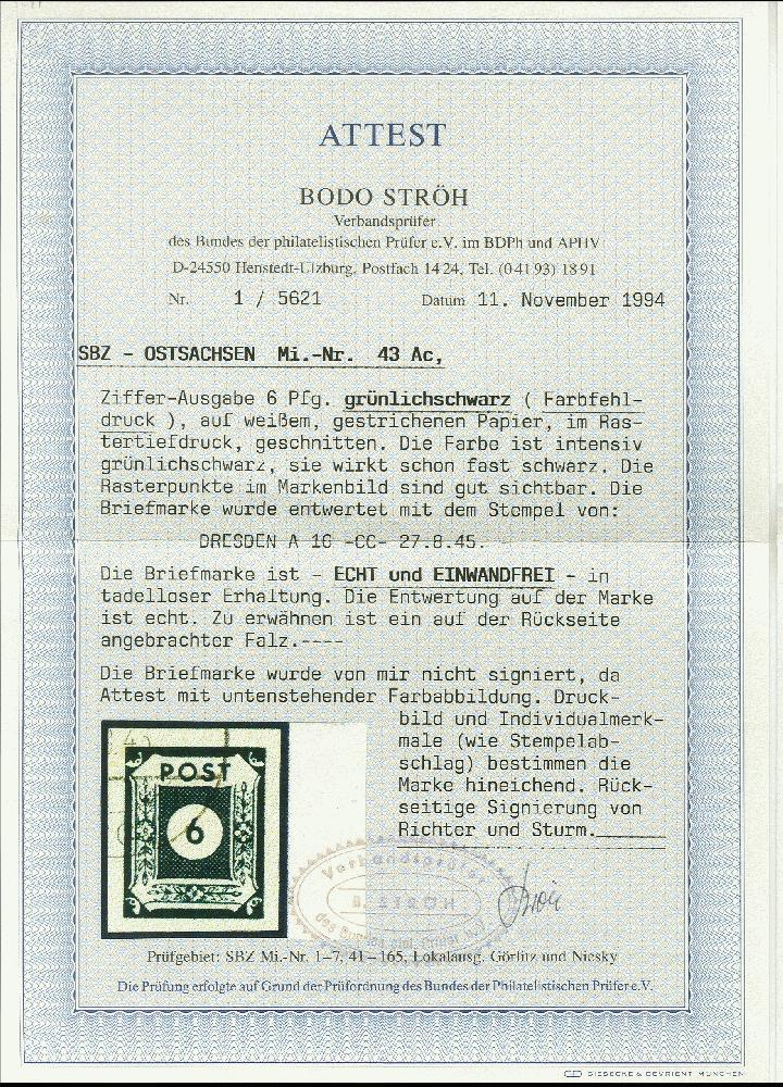 | Prüfgebiet: | Alliierte Besetzung SBZ Ost-Sachsen |