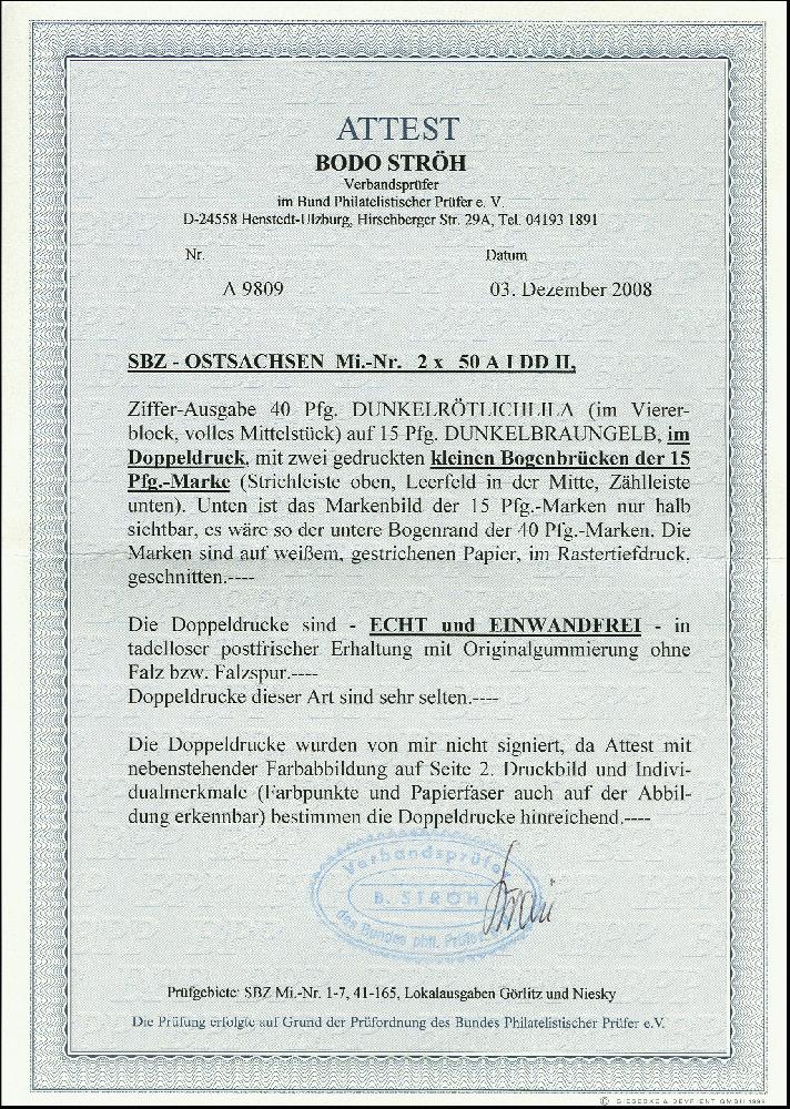 | Prüfer: | Ströh, Bodo (BPP (Bund Philatelistischer Prüfer)) |