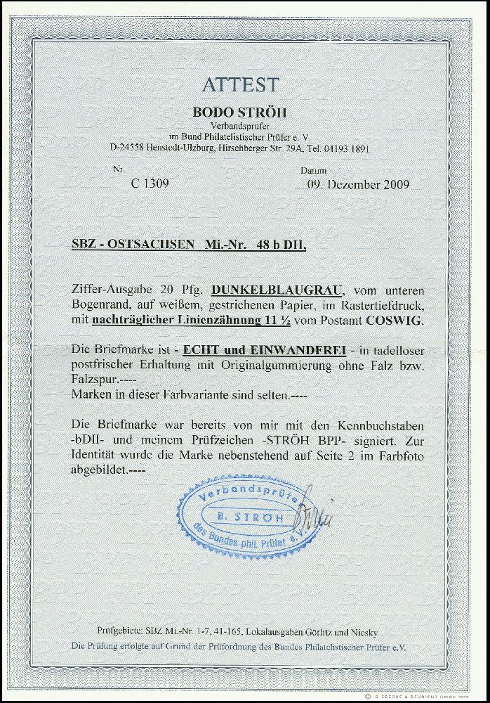 | Prüfer: | Ströh, Bodo (BPP (Bund Philatelistischer Prüfer)) |