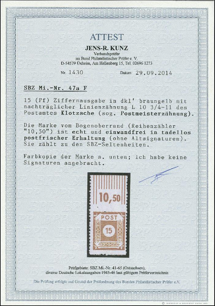 | Prüfer: | Kunz, Jens-R. (BPP (Bund Philatelistischer Prüfer)) |