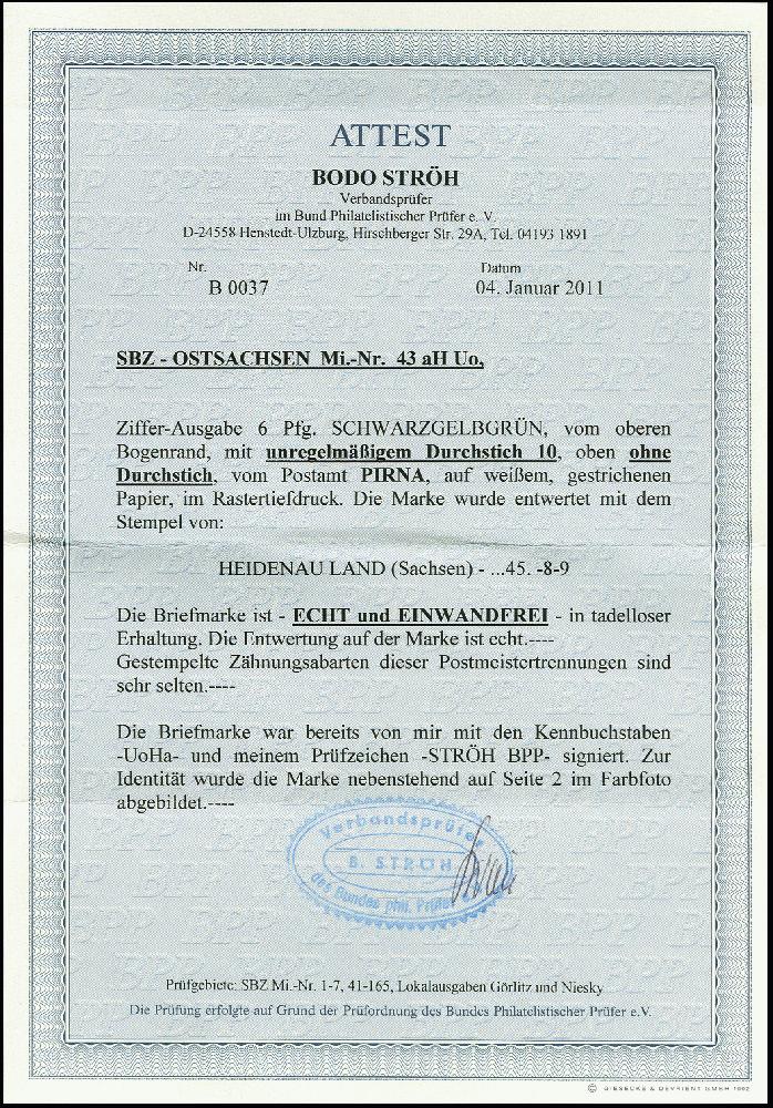 | Prüfer: | Ströh, Bodo (BPP (Bund Philatelistischer Prüfer)) |
