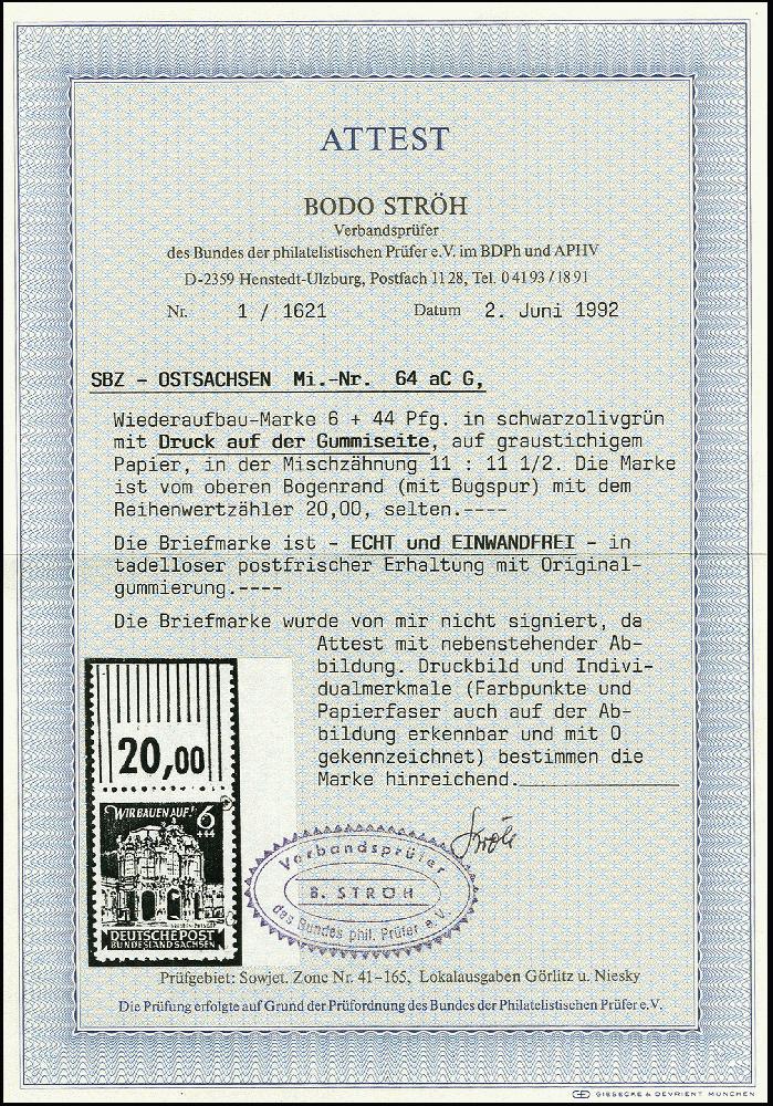 | Prüfer: | Ströh, Bodo (BPP (Bund Philatelistischer Prüfer)) |