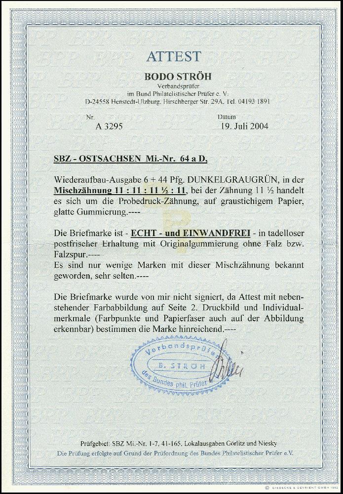 | Prüfgebiet: | Alliierte Besetzung SBZ Ost-Sachsen |