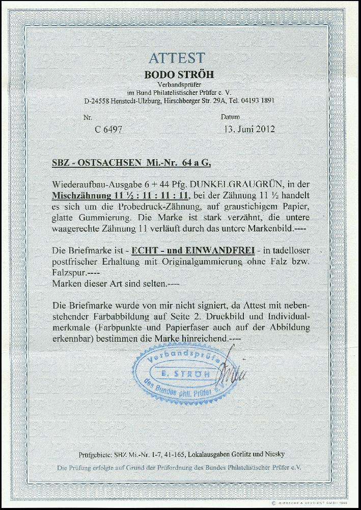 | Prüfer: | Ströh, Bodo (BPP (Bund Philatelistischer Prüfer)) |