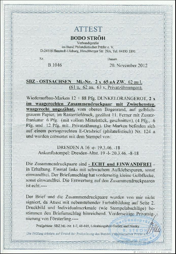 | Prüfgebiet: | Alliierte Besetzung SBZ Ost-Sachsen |