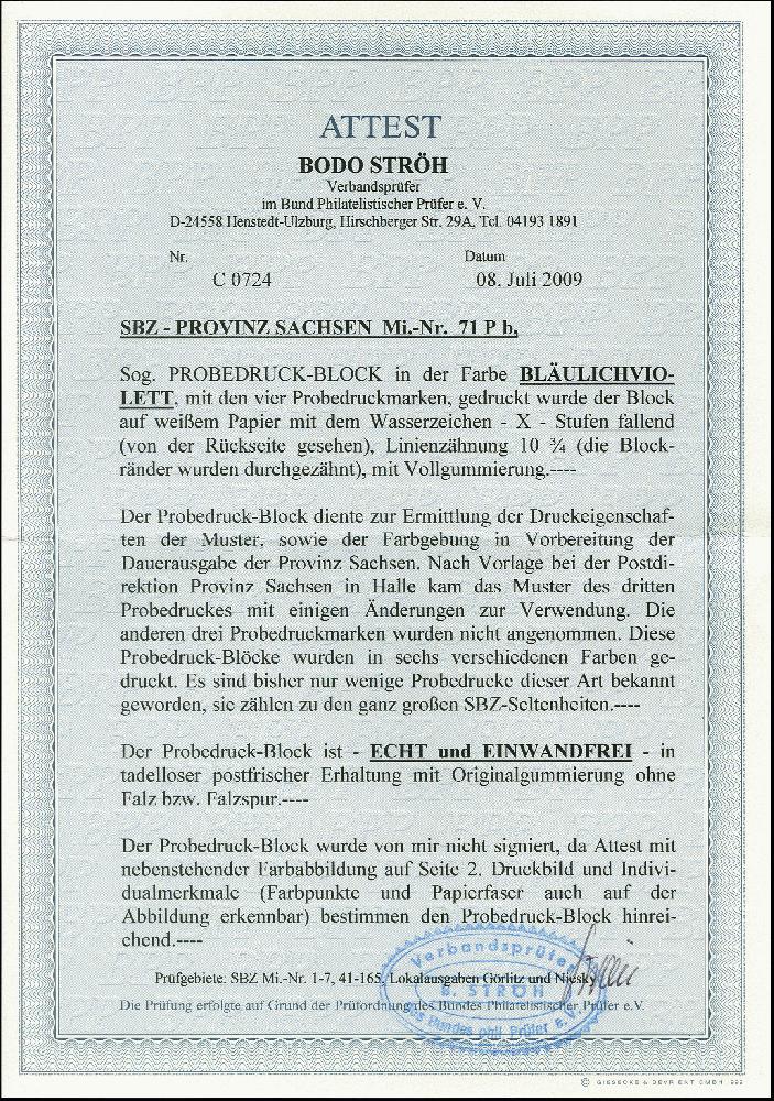 | Prüfer: | Ströh, Bodo (BPP (Bund Philatelistischer Prüfer)) |
