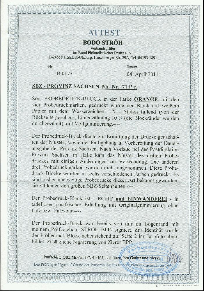 | Prüfer: | Ströh, Bodo (BPP (Bund Philatelistischer Prüfer)) |