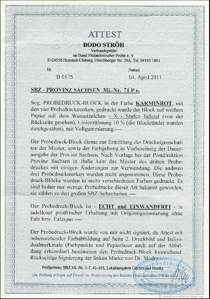 | Prüfer: | Ströh, Bodo (BPP (Bund Philatelistischer Prüfer)) |