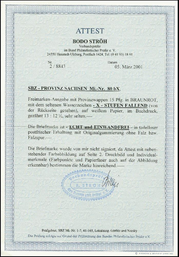 | Prüfer: | Ströh, Bodo (BPP (Bund Philatelistischer Prüfer)) |