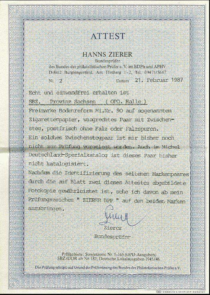 | Prüfer: | Zierer, Hanns (BPP (Bund Philatelistischer Prüfer)) |