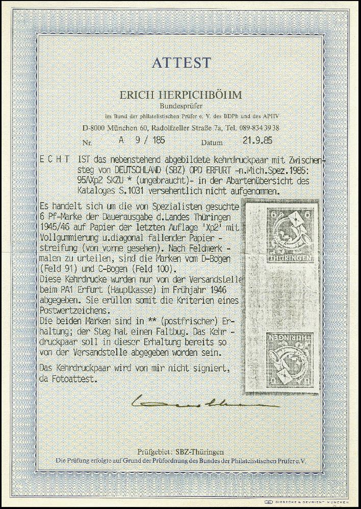 | Prüfer: | Herpichböhm, Erich (BPP (Bund Philatelistischer Prüfer)) |