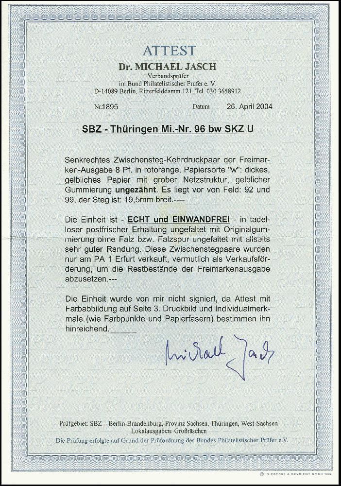 | Prüfer: | Jasch, Michael (BPP (Bund Philatelistischer Prüfer)) |