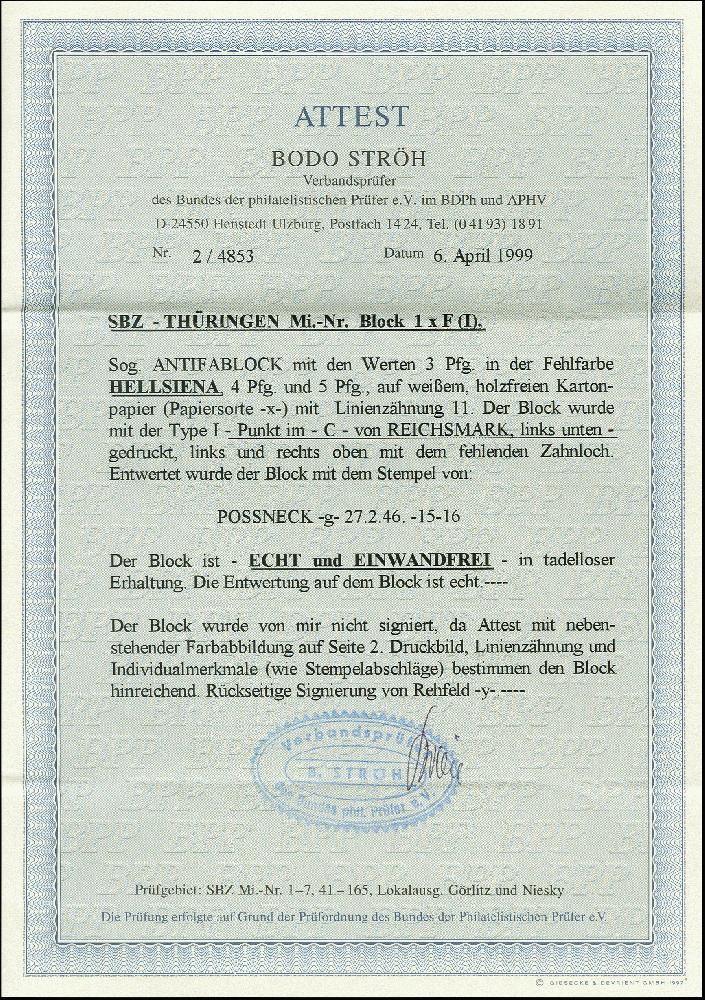 | Prüfer: | Ströh, Bodo (BPP (Bund Philatelistischer Prüfer)) |