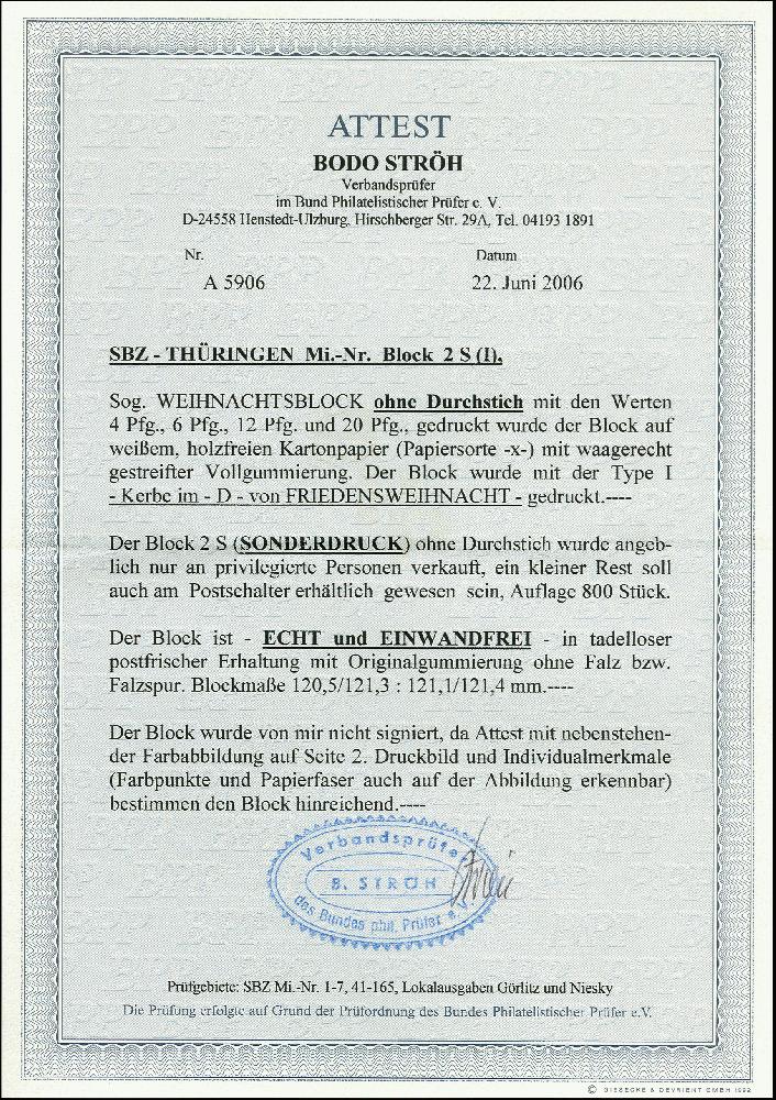 | Prüfer: | Ströh, Bodo (BPP (Bund Philatelistischer Prüfer)) |
