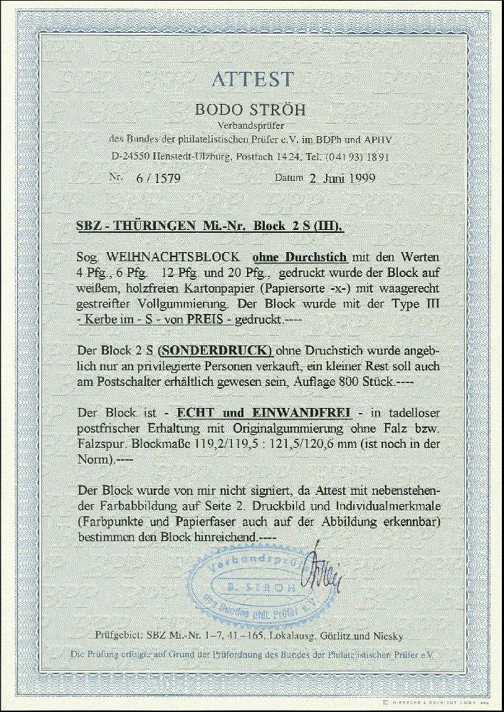 | Prüfer: | Ströh, Bodo (BPP (Bund Philatelistischer Prüfer)) |