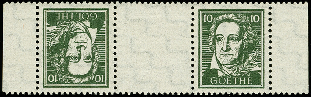 | Zusatzinformationen und Suchstichworte: | 367. Auktion Heinrich Köhler 25. - 29. September 2018 Los 1833 Vorlagedrucke 10 Pfg. dunkelgraugrün mit Wasserzeichen "Stufen steigend" im waagerechten Kehrdruckpaar mit Leerfeld sowie rechts und links mit anhängenden Bogenrändern, postfrisch, tadellos, unsigniert, laut ausführlichem Fotoattest Ströh BPP (2011) ist nur dieses eine Exemplar bekannt (Mi. 4.500,-) Zuschlag 1.600,00 EUR |