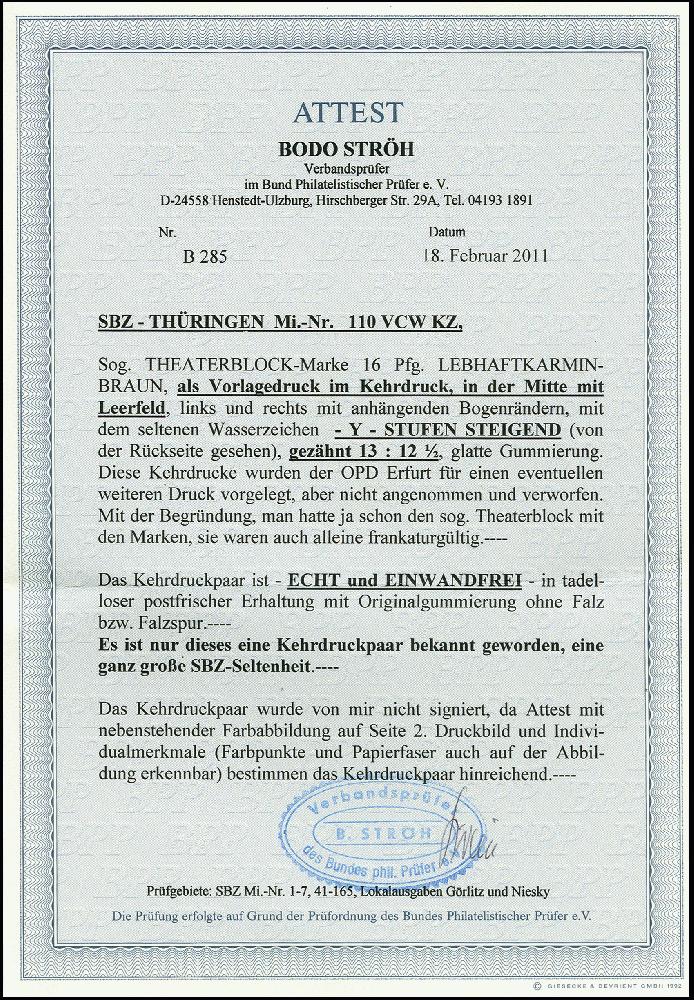 | Prüfer: | Ströh, Bodo (BPP (Bund Philatelistischer Prüfer)) |