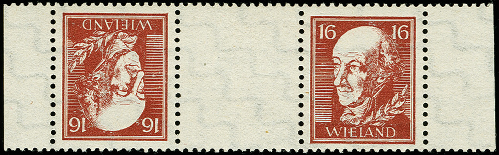 | Zusatzinformationen und Suchstichworte: | 367. Auktion Heinrich Köhler 25. - 29. September 2018 Los 1835 Vorlagedrucke 16 Pfg. lebhaftkarminbraun mit Wasserzeichen "Stufen steigend" im waagerechten Kehrdruckpaar mit Leerfeld sowie rechts und links mit anhängenden Bogenrändern, postfrisch, tadellos, unsigniert, laut ausführlichem Fotoattest Ströh BPP (2011) ist nur dieses eine Exemplar bekannt (Mi. 4.500,-) Zuschlag 1.200,00 EUR |