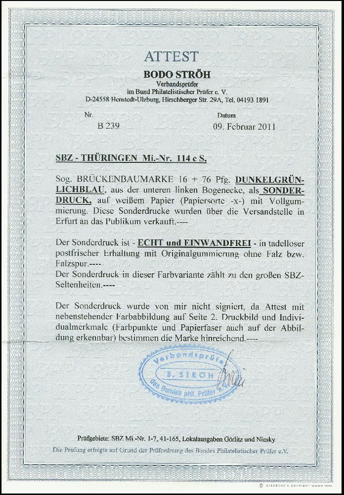 | Prüfer: | Ströh, Bodo (BPP (Bund Philatelistischer Prüfer)) |