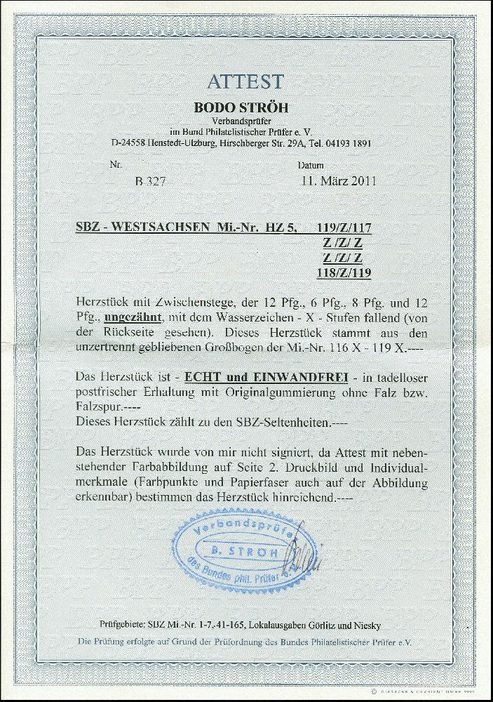 | Prüfgebiet: | Alliierte Besetzung SBZ West-Sachsen |