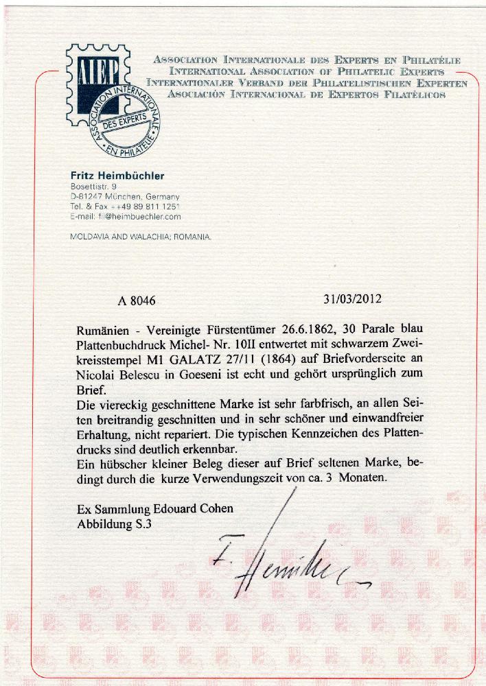 | Prüfer: | Heimbüchler, Fritz (AIEP (Association internationale des experts en philatélie)) |