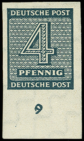 | Zusatzinformationen und Suchstichworte: | 367. Auktion Heinrich Köhler 25. - 29. September 2018 Los 1871 4 Pfg. schwarzgraublau ungezähnt mit Wasserzeichen 1 X, Unterrandstück, postfrisch, unsigniert mit Fotoattest Ströh BPP: "...in tadelloser postfrischer Erhaltung" (2006) (Mi. 800,-) Ausruf 200,00 EUR |
