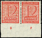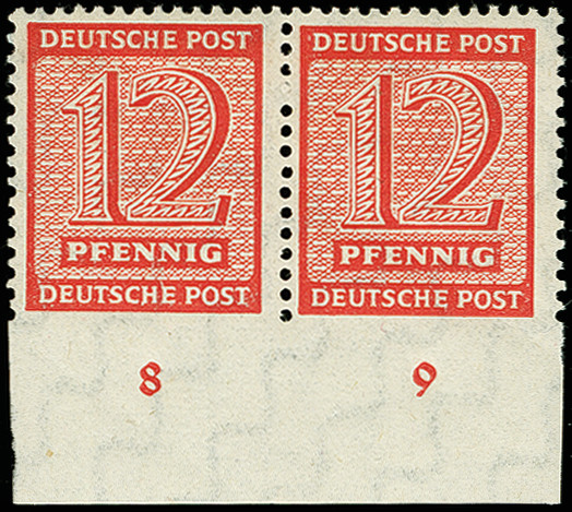 | Zusatzinformationen und Suchstichworte: | 367. Auktion Heinrich Köhler 25. - 29. September 2018 Los 1873 12 Pfg. rot mit Wasserzeichen 1 X und Abart "unten ungezähnt", waagerechtes Unterranpaar, postfrisch mit Kalanderbügen, unsigniert mit Fotoattest Ströh BPP: "...in tadelloser postfrischer Erhaltung" (2004) (Mi. 1.400,-) Zuschlag 250,00 EUR |