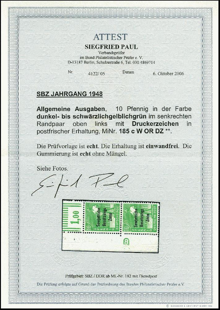| Prüfer: | Paul, Siegfried (BPP (Bund Philatelistischer Prüfer)) |