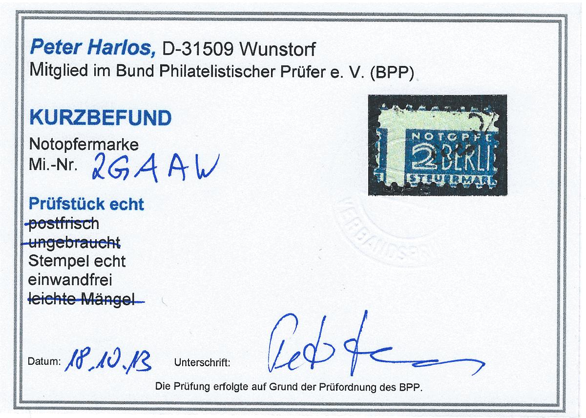 | Prüfgebiet: | Alliierte Besetzung Notopfer- und Wohnungsbaumarken |