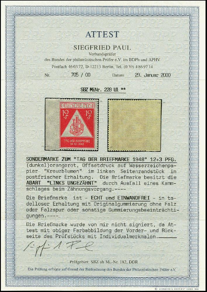 | Prüfer: | Paul, Siegfried (BPP (Bund Philatelistischer Prüfer)) |