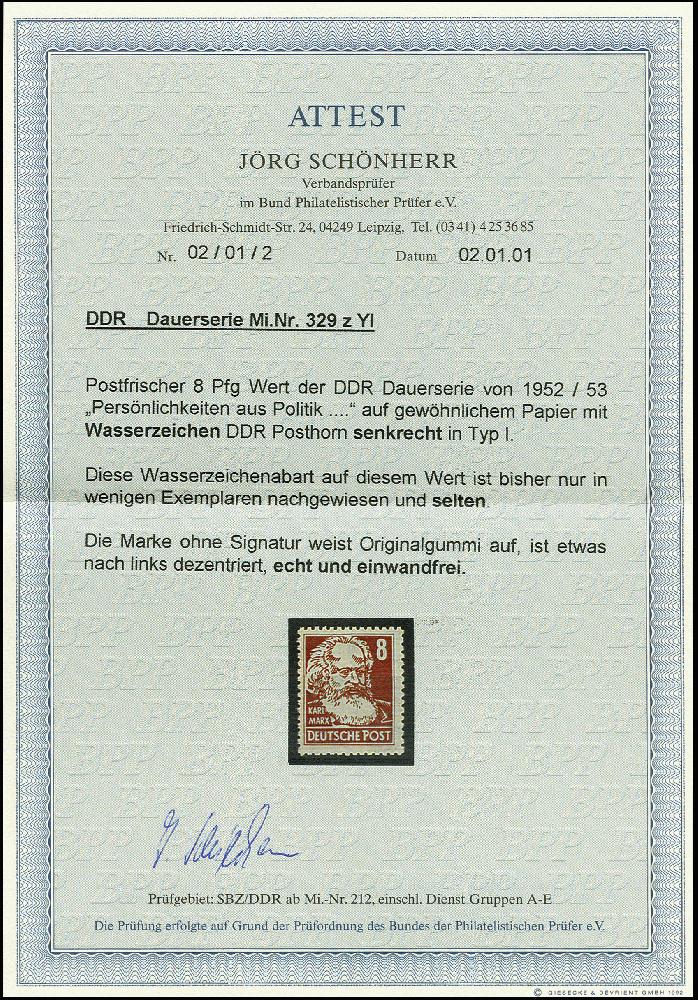 | Prüfer: | Schönherr, Jörg (BPP (Bund Philatelistischer Prüfer)) |