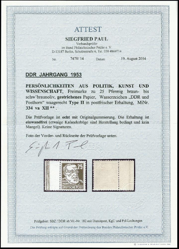 | Prüfer: | Paul, Siegfried (BPP (Bund Philatelistischer Prüfer)) |