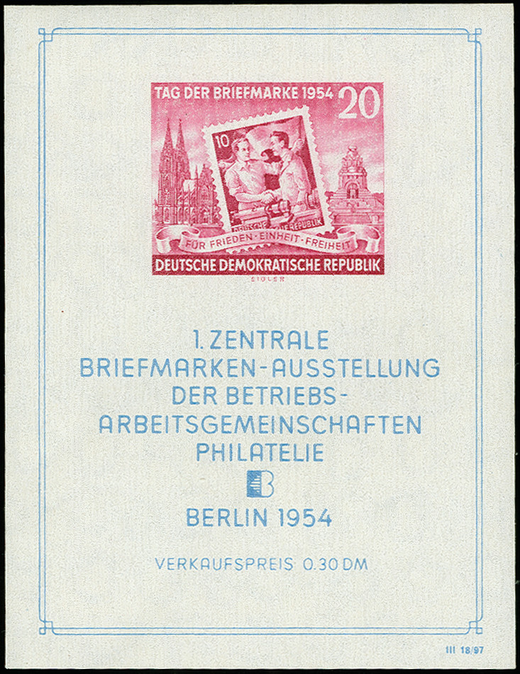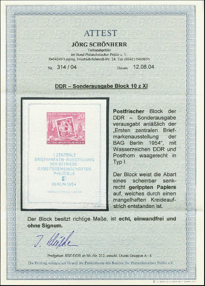 | Zusatzinformationen und Suchstichworte: | 367. Auktion Heinrich Köhler 25. - 29. September 2018 Los 2005 Tag der Briefmarke-Block mit Wasszezeichen 2 XI und scheinbar senkrecht geripptes Papier (fehlerhafter Kreideschicht-Auftrag), postfrisch, tadellos, unsigniert mit Fotoattest Schönherr BPP (2004) (Mi. 2.000,-) Zuschlag 400,00 EUR |