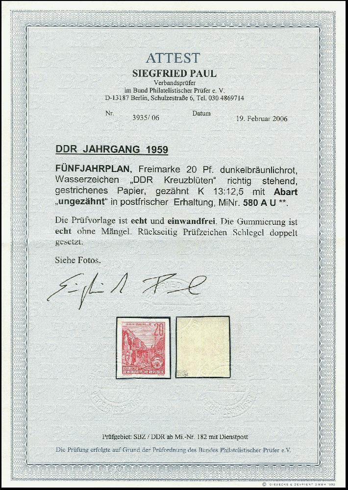 | Zusatzinformationen und Suchstichworte: | 367. Auktion Heinrich Köhler 25. - 29. September 2018 Los 2013 1959, Fünfjahrplan 20 Pfg. ungezähnt, postfrisch, tadellos, doppelt sign. Schlegel und Fotoattest Paul BPP (2006) (Mi. 800,-) Ausruf 200,00 EUR |