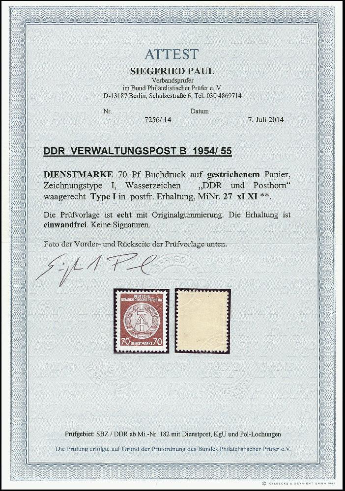 | Prüfgebiet: | DDR Dienstmarken - A Verwaltungspost B |