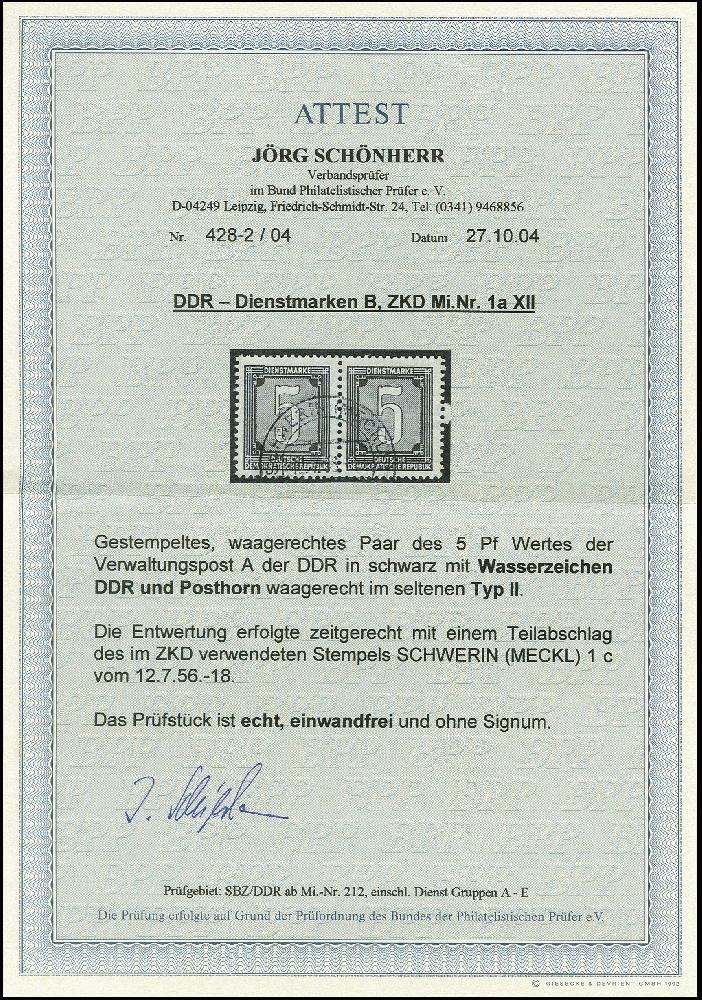 | Prüfgebiet: | DDR Dienstmarken - B Verwaltungspost A |