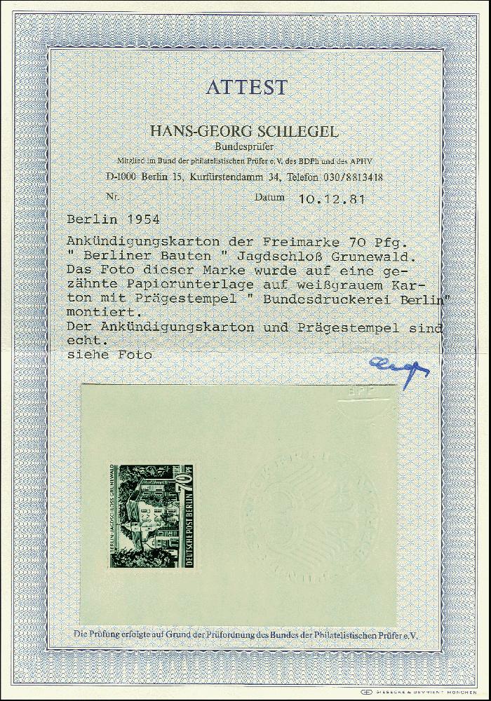 | Zusatzinformationen und Suchstichworte: | 367. Auktion Heinrich Köhler 25. - 29. September 2018 Los 2120 Ankündigungskarton mit Schwarzweiß-Foto der 70 Pfg. und Prägesiegel der Staatsdruckerei unten, Pergamin-Schutzblatt umgeklebt, Fotoattest Schlegel BPP (1981) (Mi. 250,-) Zuschlag 80,00 EUR |