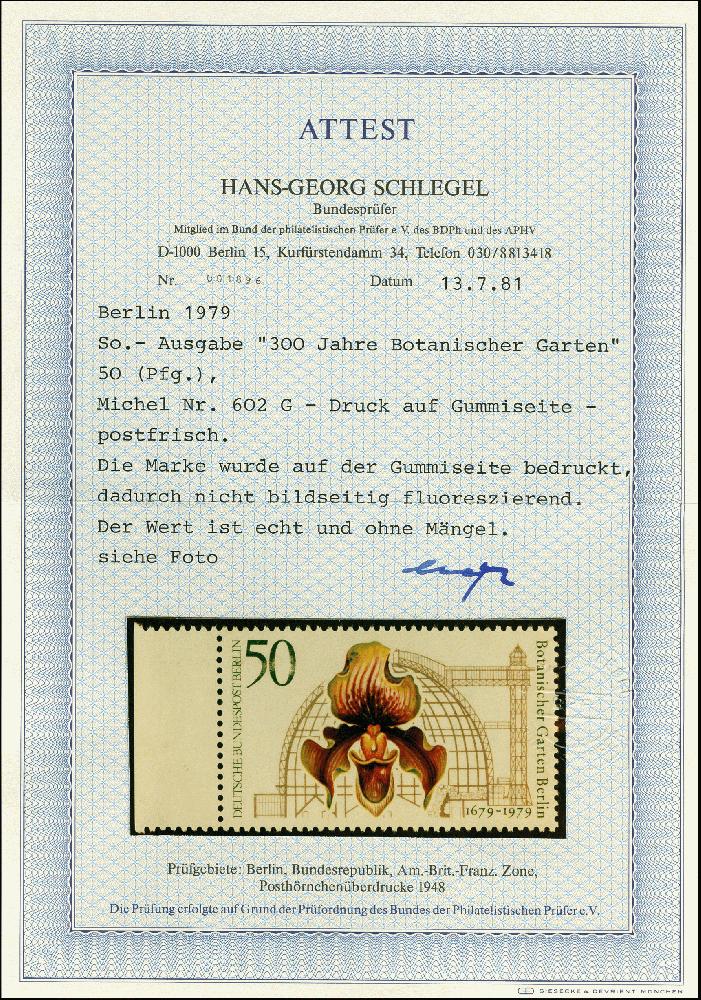 | Zusatzinformationen und Suchstichworte: | 367. Auktion Heinrich Köhler 25. - 29. September 2018 Los 2143 1979, 300 Jahre Botanischer Garten Berlin 50 Pfg. mit Druck auf der Gummiseite, Randstück, postfrisch, tadellos, Fotoattest Schlegel BPP (1981) (Mi. 1.750,-) Ausruf 350,00 EUR |