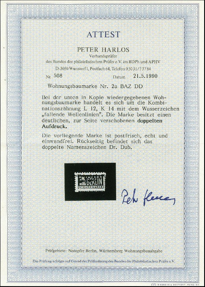 | Prüfgebiet: | Alliierte Besetzung Notopfer- und Wohnungsbaumarken |