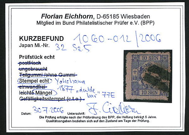 | Prüfer: | Eichhorn, Florian (BPP (Bund Philatelistischer Prüfer)) |